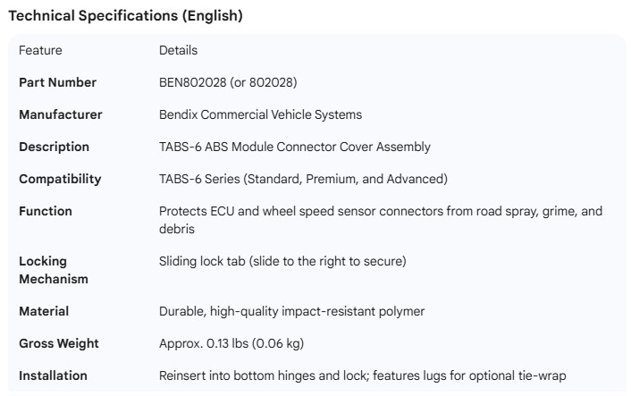 BENDIX COVER FOR TABS-6 ABS MODULE