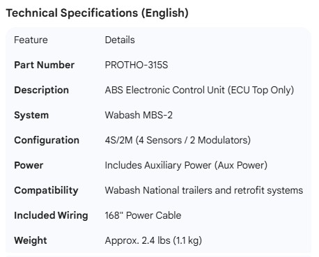 WABASH ABS ECU TOP ONLY MBS-2 4S/2M WITH AUX POWER