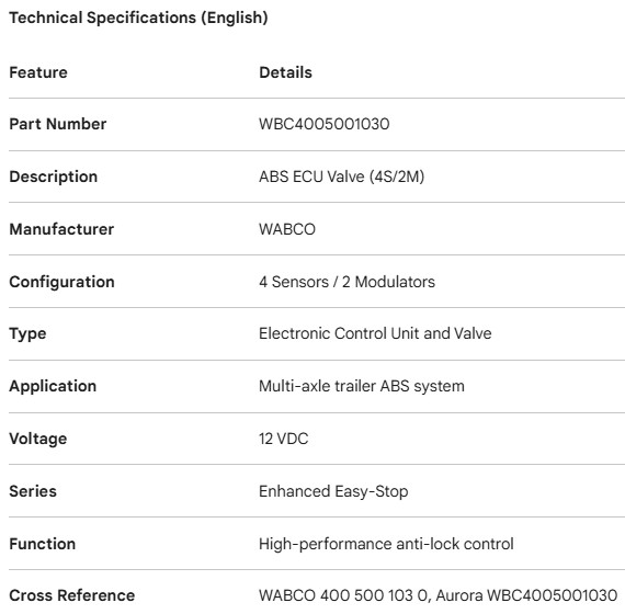 WABCO ABS ECU VALVE 4S/2M