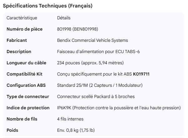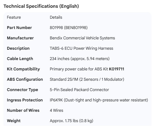 BENDIX POWER CABLE POWER CABLE FOR K019711
