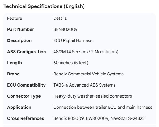 BENDIX ECU CABLE PIGTAIL HARNESS 4S/2M 60"