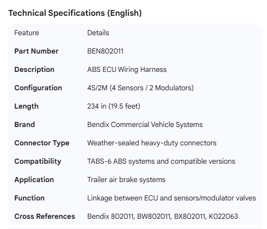 BENDIX ECU HARNESS 4S/2M 234"