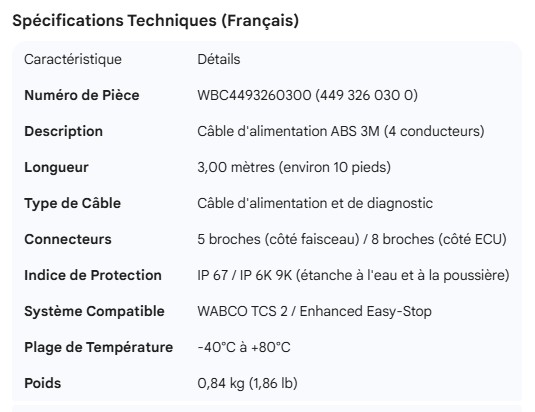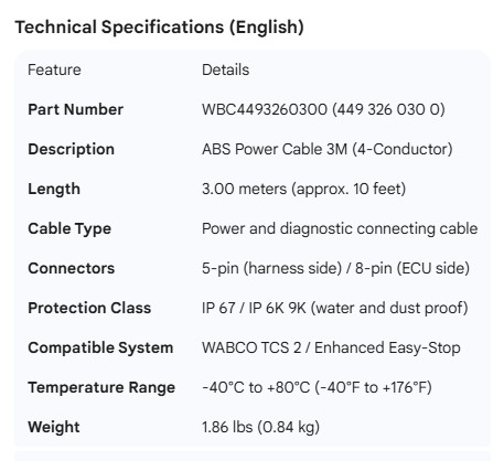 WABCO POWER CABLE 3M