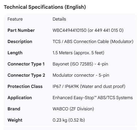 WABCO TCS CABLE 1.5M