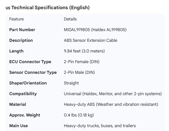 MIDLAND ABS SENSOR EXTENSION 9.84'