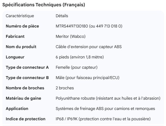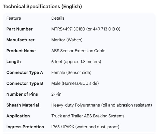MERITOR ABS SENSOR EXTENSION CABLE (6 FT.)