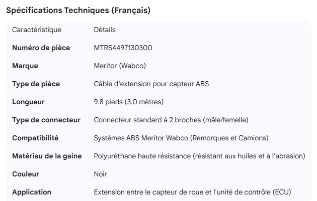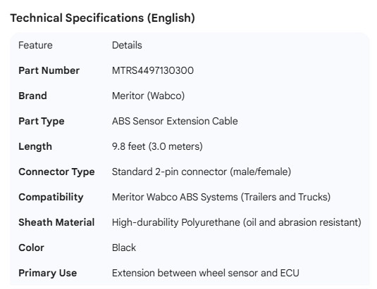 MERITOR ABS SENSOR EXTENSION CABLE (9.8')