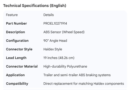 PROPAR ABS SENSOR 90DEG 19" HALDEX STYLE