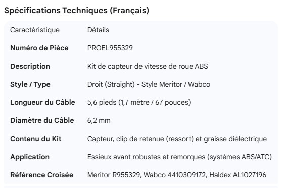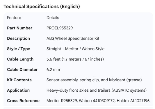 PROPAR ABS SENSOR STRAIGHT 5.6' MERITOR STYLE