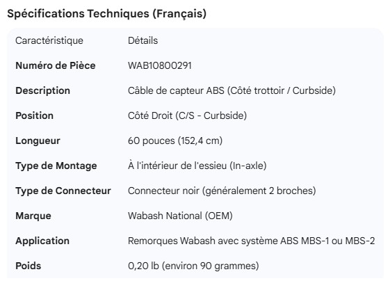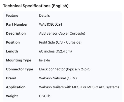 WABASH ABS SENSOR CABLE C/S