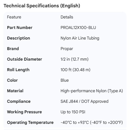 PROPAR NYLON AIR LINE TUBING BLUE 1/2"