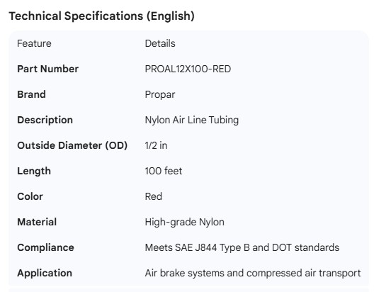 PROPAR NYLON AIR LINE TUBING RED 1/2"