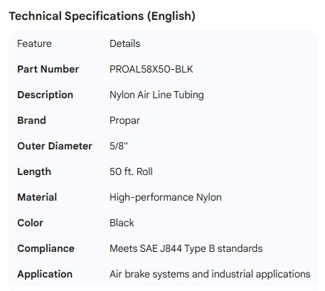PROPAR NYLON AIR LINE TUBING BLACK 5/8"