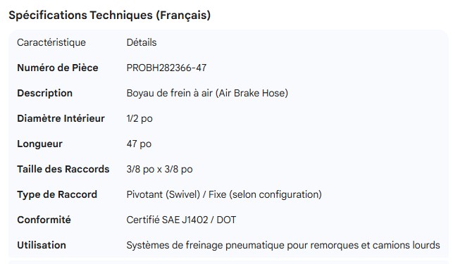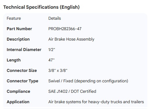 PROPAR AIR BRAKE HOSE 1/2" X 47" - 3/8 X 3/8 CONNECTORS