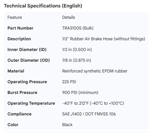 TRAMEC 1/2" AIR BRAKE HOSE