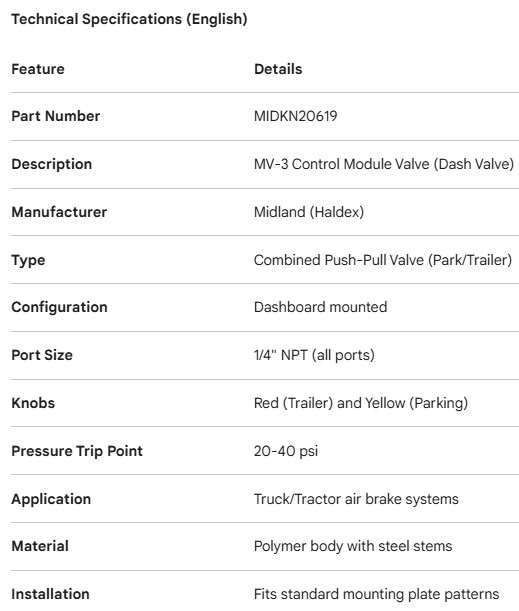 MIDLAND DASH VALVE PUSH-PULL MV-3