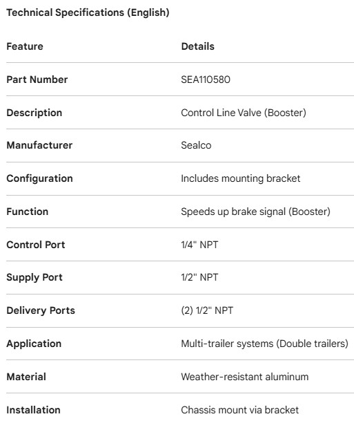 SEALCO VALVE CONTROL LINE - BOOSTER W/BRACKET