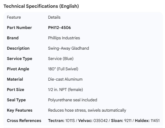 PHILLIPS SWING AWAY GLAD-HAND SERVICE