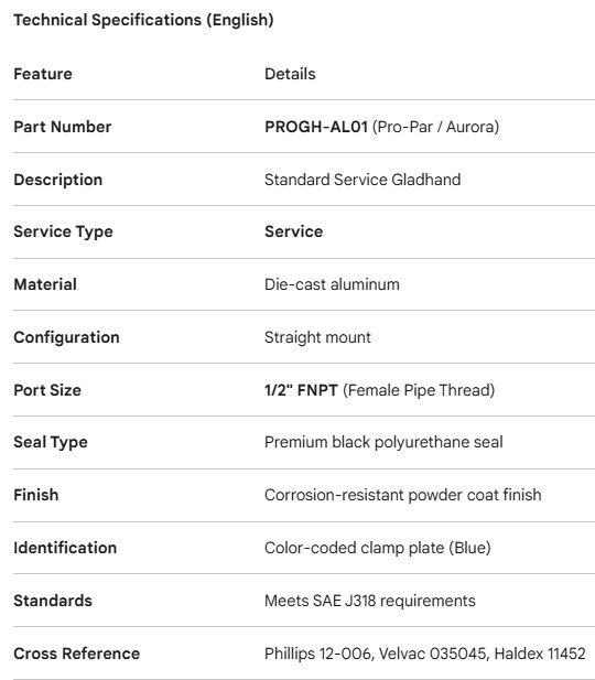 PROPAR GLADHAND STD SERVICE