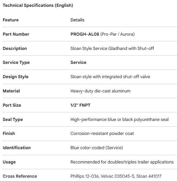 PROPAR GLADHAND SERVICE SLOAN STYLE W/SHUTOFF