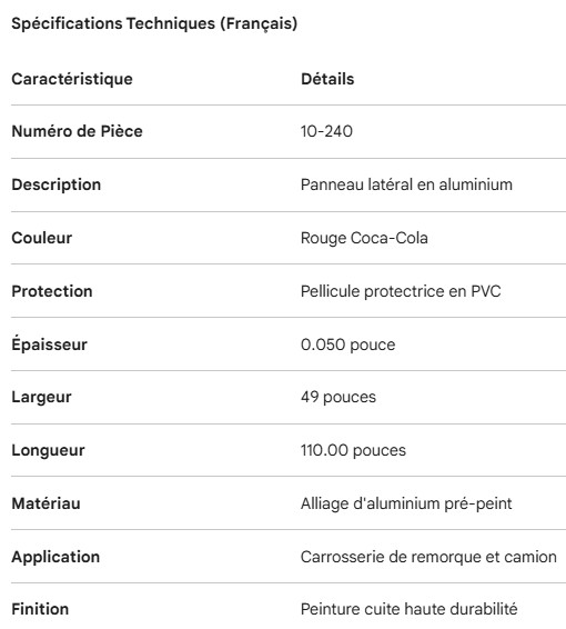SIDE PANEL ALUM COCA-COLA RED W/PVC .050" X 49" X 110.00"