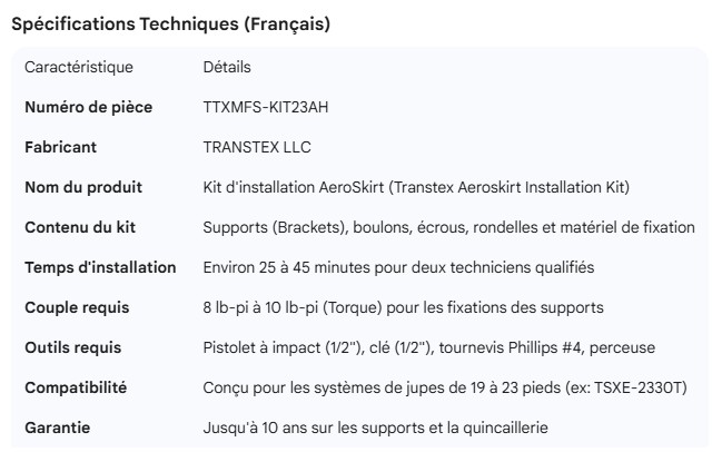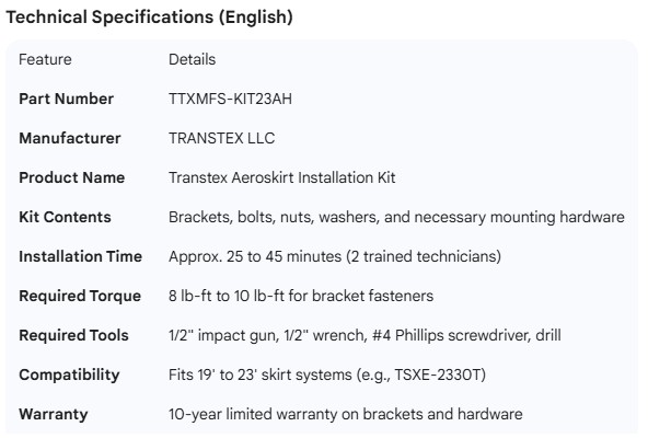 TRANSTEX AEROSKIRT INSTALLATION KIT