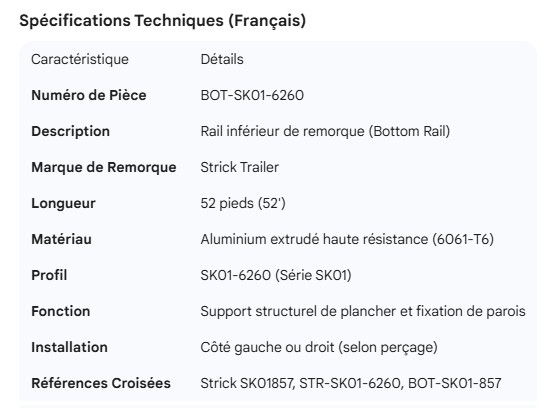STRICK BOTTOM RAIL 52' SK01857