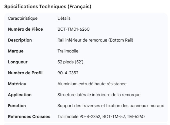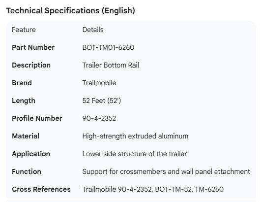 TRAILMOBILE BOTTOM RAIL 52' 90-4-2352