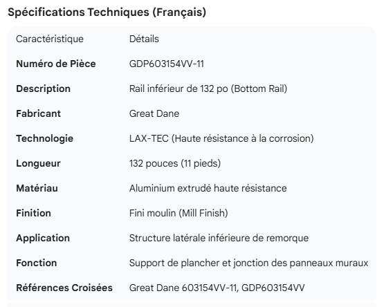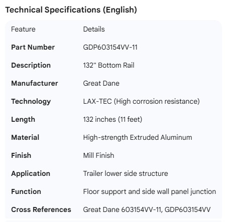 GREAT-DANE BOTTOM RAIL 132" LAX-TEC