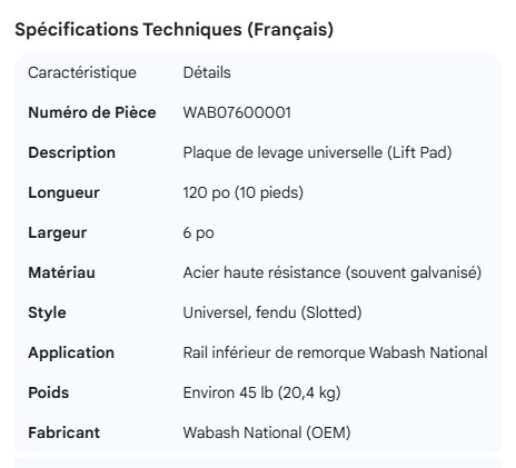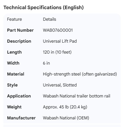 WABASH BOTTOM RAIL LIFT PAD UNIVERSAL 120"