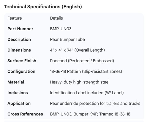 BUMPER TUBE POOCHED 1/8 X 4 X 4 X 95 STEEL