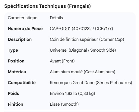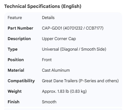 GREAT-DANE CORNER CAP CCB7177, 40701232