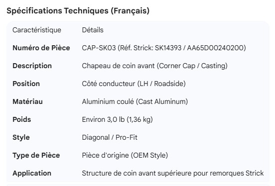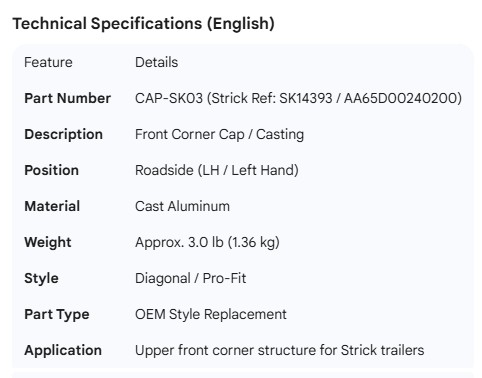 STRICK CORNER CAP LH SK14393