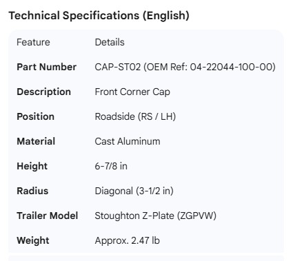 STOUGHTON CORNER CAP RS Z-PLATE 04-22044-100-00