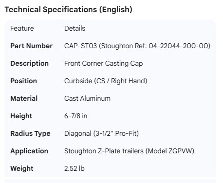STOUGHTON CORNER CAP CS Z-PLATE 04-22044-200-00