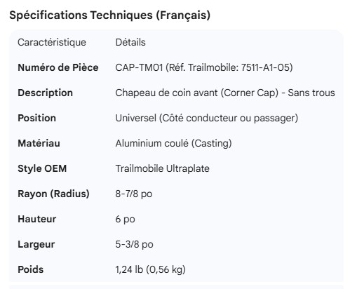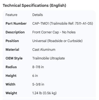 TRAILMOBILE CORNER CAP 7511-A1-05 (NO HOLES)