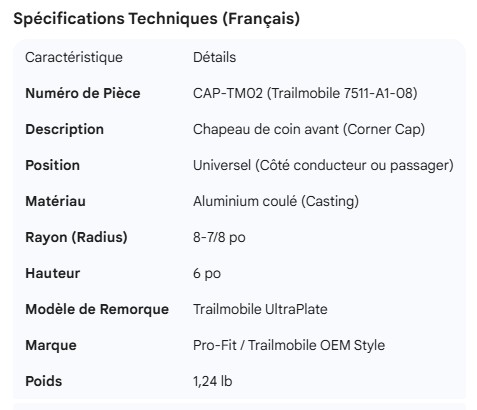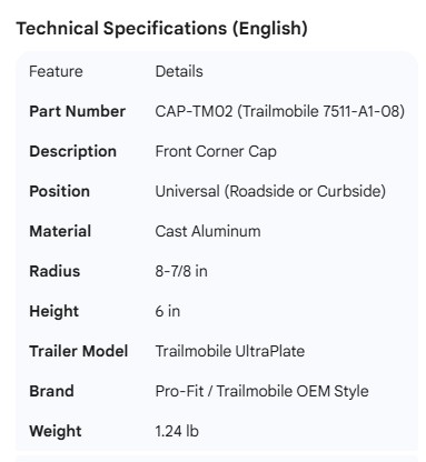 TRAILMOBILE CORNER CAP 7511-A1-08