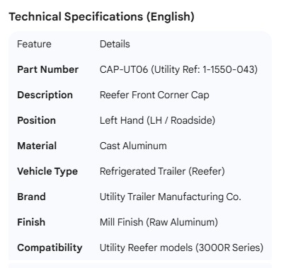 UTILITY CORNER CAP LH 1-1550-043