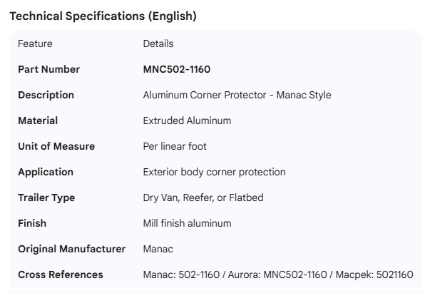 MANAC CORNER PROTECTOR ALUMINUM (PER.FT)