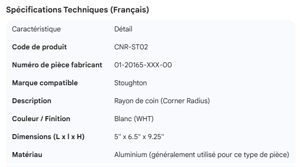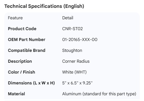 STOUGHTON CORNER RADIUS WHT 01-20165-XXX-00 5"X 6.5"X9.25"
