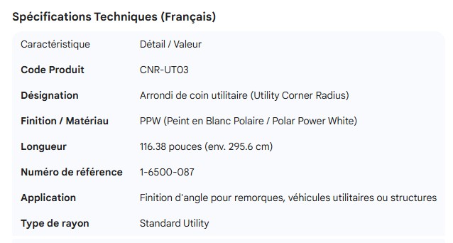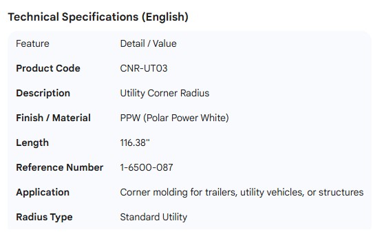 UTILITY CORNER RADIUS PPW 116.38" 1-6500-087