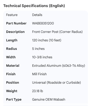 WABASH CORNER POST 12-7/8" W/ATTACHMENT