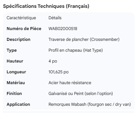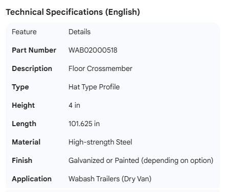 WABASH FRONT CROSSMEMBER WILLIAMS