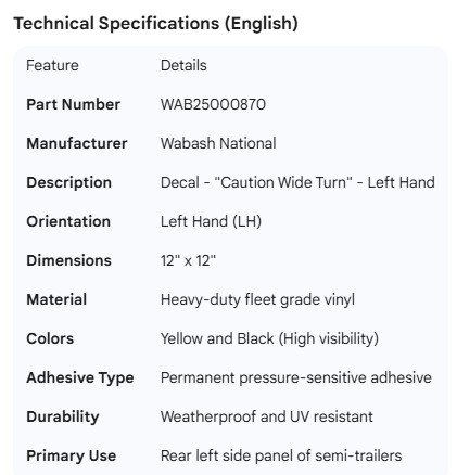 WABASH DECAL WIDE TURN LH