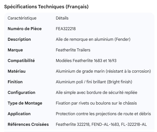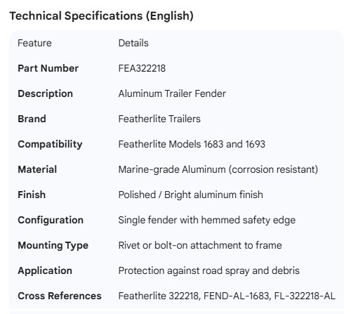 FEATHERLITE ALUMINUM FENDER FOR MODEL 1683 & 1693