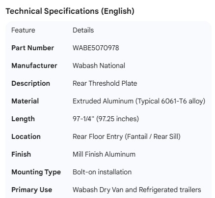 WABASH ALUM REAR THRESHOLD FOR REEFER