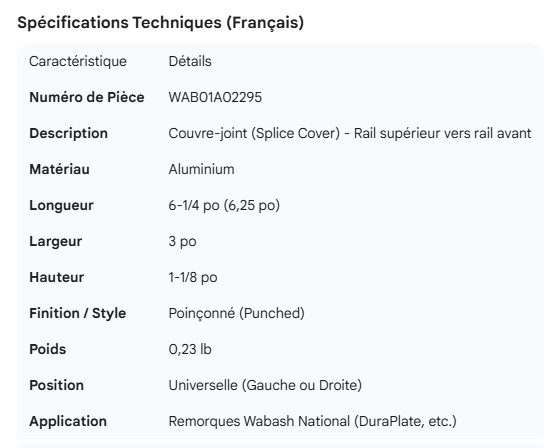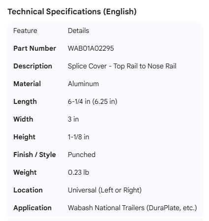 WABASH SPLICE COVER TOP RAIL TO NOSE RAIL