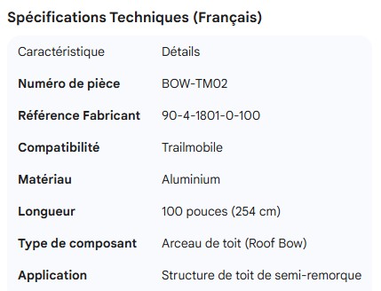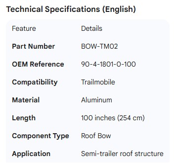TRAILMOBILE ROOF BOW ALUM 100" 90-4-1801-0-100
