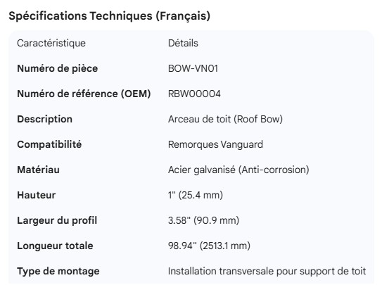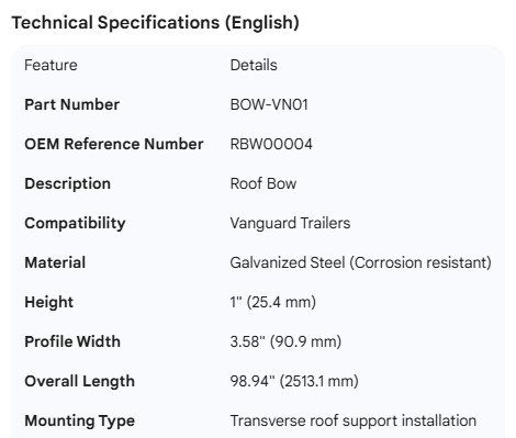 VANGUARD ROOF BOW GALV 1" X 3.58" X 98.94" RBW00004