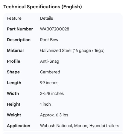 WABASH ROOF BOW STEEL 99''